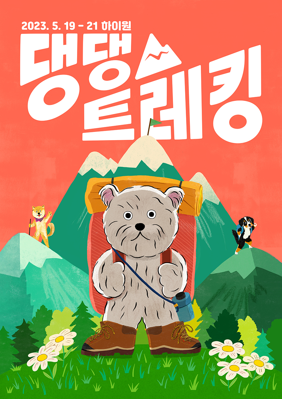 | 산을 통째로 빌렸어요! 댕댕트레킹, 프라이빗 반려견 트레킹 코스 일시 : 2023년 5월 19일(금) ~ 21일(일) 장소 : 하늘길 트레킹 코스 + 정선 하이원 리조트 주요내용 : 6k, 4k, 3k 코스 자유 선택 보듬 훈련사와 함께 대규모 트레킹 클래스 트레킹 대장(강형욱 훈련사)과 다양한 프로그램 대상 : 보호자 3,500명 with 반려견 티켓 : 일반 참가권 49,000원 및 일부 할인적용 할인권 (숙박권 별도) 링크 : https://dangdangtrekking.com/